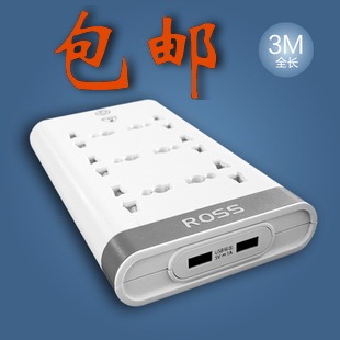 ROSS m6030u 6位万能孔 防雷 过载保护 双USB口 插座