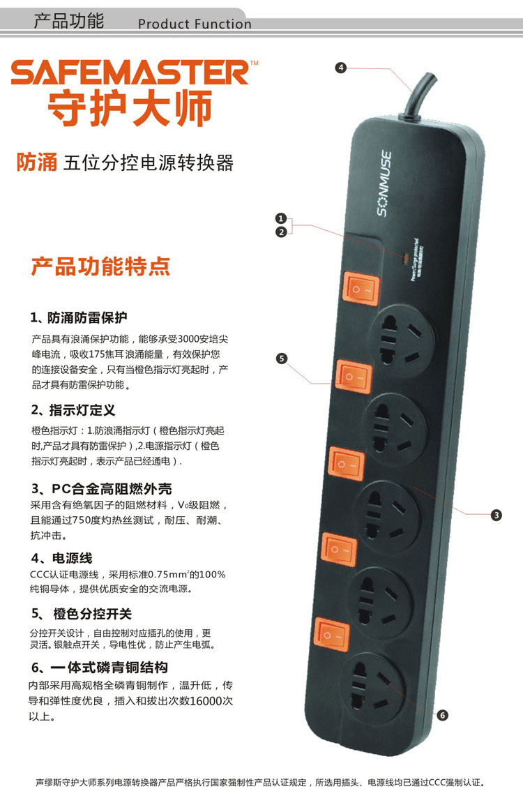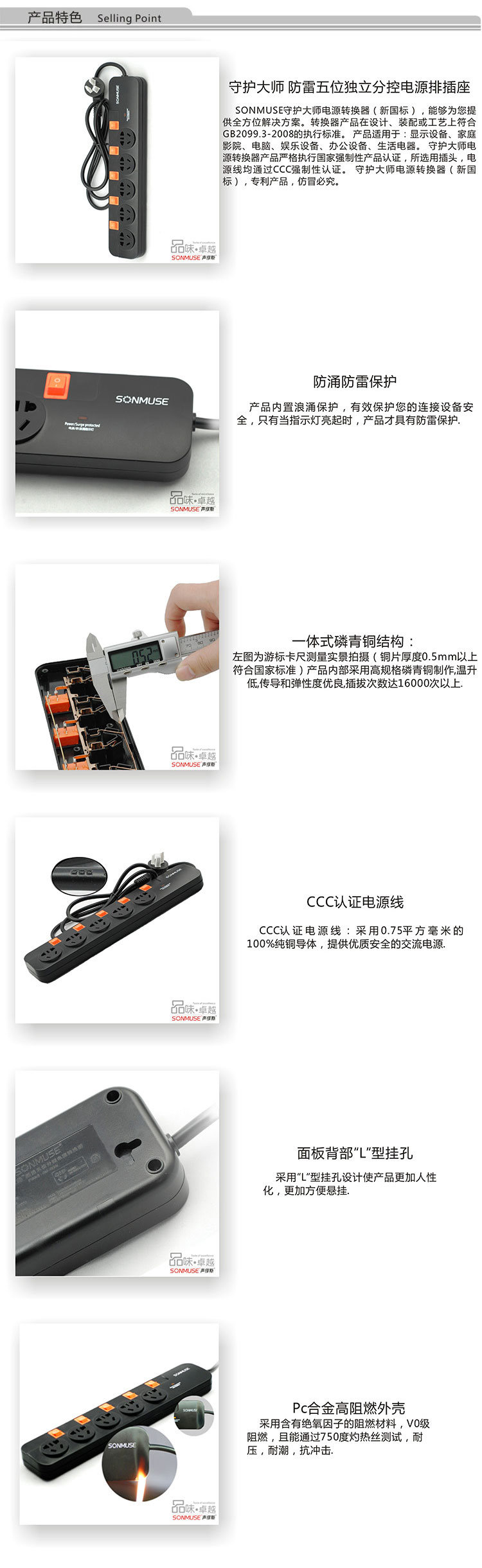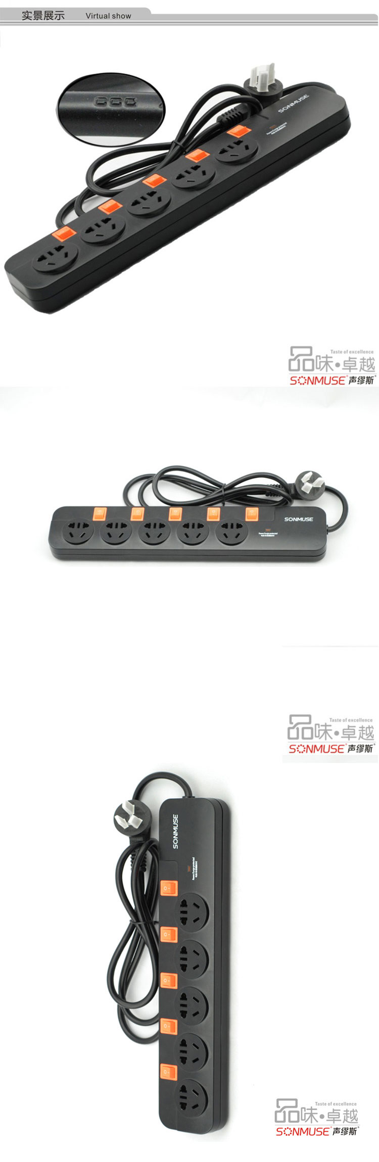 gz减6元 ¥39 美国声缪斯 5位分控 一体铜条 防雷 插座/排插