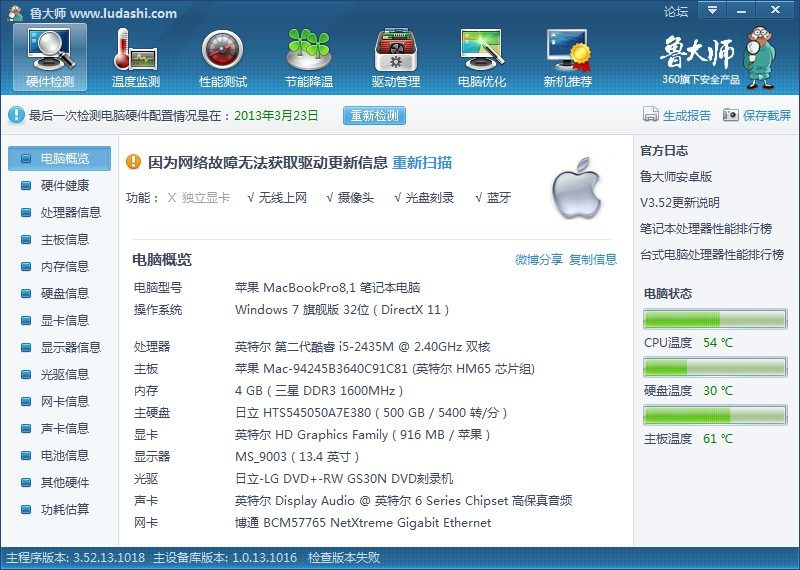 Macbook PRO (MD313):i5 2435M-2.4G|4G内存|500G硬盘|HD3000高性能显卡|摄像头蓝牙无线背光键盘