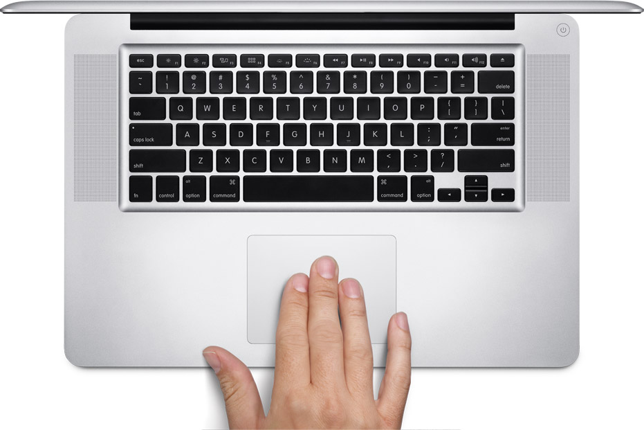 Multi-Touch 触控板也是按键。这给了你更多空间来追踪和点按:上、下、左、右以及其他任何地方。Apple 的设计师和工程师们花了大量的时间,考虑诸如触控敏感度 (多大的压力触发点按效果?)、声音回应 (点按听起来应该如何?) 以及平滑玻璃表面该有多少摩擦力 (触感怎样?) 之类的问题,终于创造出令你和手指都喜欢的触控板。