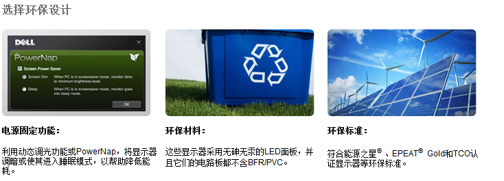 增强整体观看体验 多种连接选项: 利用USB 3.0、DisplayPort 1.2、mini-DisplayPort、DVI-D (HDCP)和HDMI,无缝连接PC和附件。 灵活的视角: 凭借倾斜、侧转、沿枢轴转动和高度调节功能,将显示器调整至最舒适的观赏角度。 Dell Display Manager: 利用“智能影像增强”、“自动模式”和“轻松排列”软件应用程序,提高工作效率。 完美面板保证: 只要发现显示器屏幕上有一个亮点缺陷,我们就会为您免费更换面板。 可靠的保修和服务: 获得3年期先行更换服务和有限硬件保修。 | ![]() |