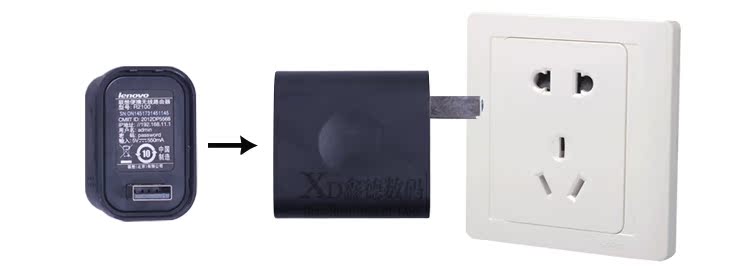 [size=14.44444465637207px] 联想便携无线路由器R2100与联想电源适配器配合使用,如图示: