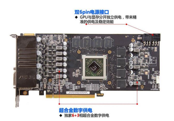 | 【稳定运行,节能降噪】 性能越强大的独立游戏显卡,在运行时越是需要更多的电流供给,因此好的供电系统要提供纯净、精准、稳定的电能“燃料”给工作中的GPU显示核心,同时还要尽可能降低自身发热,这不仅可以带来更稳定的工作环境,还可以减少能源损耗,降低显卡功耗。华硕游戏显卡采用独家研发的“超合金数字供电”技术,将航空航天级用料的超合金供电技术与数字供电结合,可降低50% EMI电磁干扰使显卡的供电更加精准稳定,提升15% 供电效率同时降低功耗,延长显卡的使用寿命,有效降低温度和噪音,提升显卡超频空间和幅度。 | ![]() |