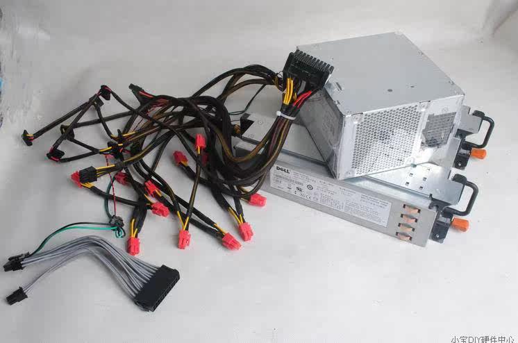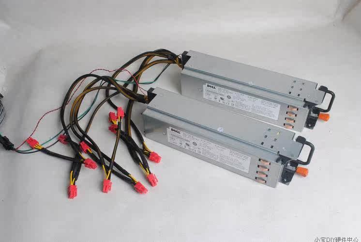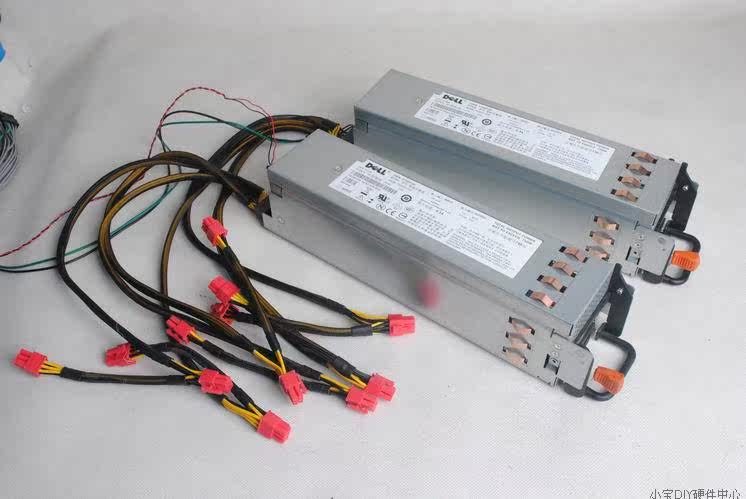 强悍,极品,由1台戴尔525W和2台戴尔750W冗余电源并联工作,通过启动线连接起来,主动PFC,只适合裸机用户,挖矿就最适合了,稳定性极佳,3台一起并联工作,额定功率2025W,其中戴尔525W是3路+12V输出,每路18A,戴尔750W是单路62.4A,轻松带4路显卡,没修没病痛,质保3个月,电源是二手的,为了推广方便特标全新,希望理解戴尔525W是66针模组电源,戴尔750W是冗余电源原本不带线,我会帮你们改好线,轻松带4路的显卡,超级稳定525W没有显卡接口的,就一个24PIN,一个CPU(4+4)PIN,6个IDE,3个SATA显卡接口分别都在750W电源上,现在起是改成模组的(没另拍图),每个电源3组显卡接口,每1组线上1个6PIN,1个(6+2)PIN接口,全部蛇皮包网: