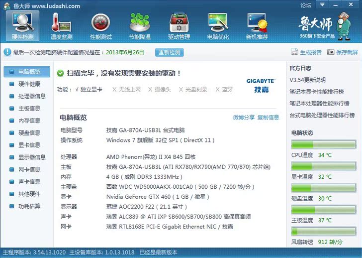 主板:技嘉870A-USB3L(无箱说,有挡板)