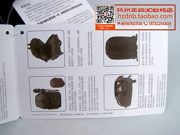 正面照片: ![]() 侧面有三脚架的魔术贴绑带。 ![]() 另外一侧照片 ![]() 肩带靠背情况,底部有腰间固定带。 ![]() 收纳防雨罩的底部隐藏隔层; ![]() 包戴上防雨罩后的情况。 ![]() 底部腰间固定带的特色,长度可伸缩,比较宽,用起来很舒服。 ![]() 第一个隔层,有手机,笔等杂物隔层,可以有条不紊收纳,还配有擦镜布。 ![]() 前侧的小隔层,收纳隔层还标有1,2,3的数字我估计是放置电池。可以分辨那块用过。 ![]() 相机仓位,都是魔术贴固定组合,可以自己随意拆卸组合的,可容纳,3个镜头,1个闪光灯,1个带镜头相机。 ![]() 相机隔层外部还有加固绑带。 ![]() 拉链头是金属的,拉链处都有防水涂层,可以有效防水。 ![]() 在靠背一侧的独立电脑隔层。 ![]() 包正面上方有很结实的提手,使用起来很方便且安全 ![]() 联想的吊牌 ![]() 官方放置的宣传照片。 ![]() | ||||||||||||||||||||||