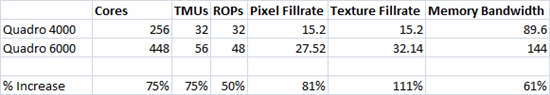 Q6000、Q4000之间呢?前者规格也高出不少,性能则平均高了50%,显示了良好的伸缩性,说明硬件能力得到了充分的发挥。