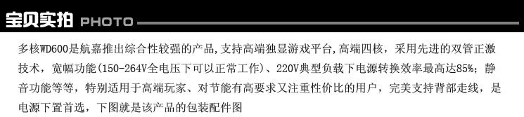 标题: 正品行货 航嘉电源多核WD600 600W超大功率 游戏玩家最佳伴侣 全国免邮