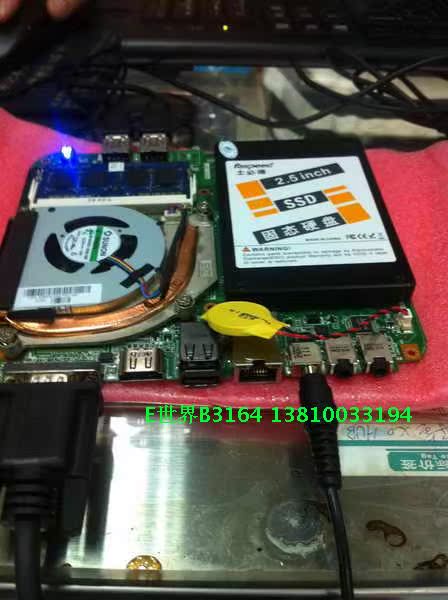 首先,我简单介绍下主板上面的硬件设备跟规格。外观尺寸是:14*16CM,相当超级小巧,同时超薄不到2CM,板载英特尔最新研发的 赛扬847处理器,1.1GHZ双核双线程,超级低功耗17W,超低工作电压只有0.5V左右,集成HD2000的显示核心,具备32纳米的NM70芯片组,是intel 公司最新研发的超级神物。是广大DIY 爱好者和入门级超级懒虫的最爱!