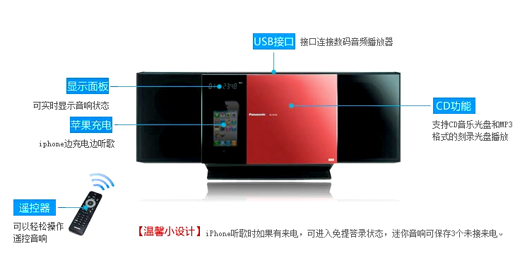 通过便携式 USB 设备直接享受 MP3音乐 只需将设备插入系统上的 USB 端口,您就可以直接从设备上播放数码音乐,与您的家人和朋友共享快乐时光。. | ![]() |