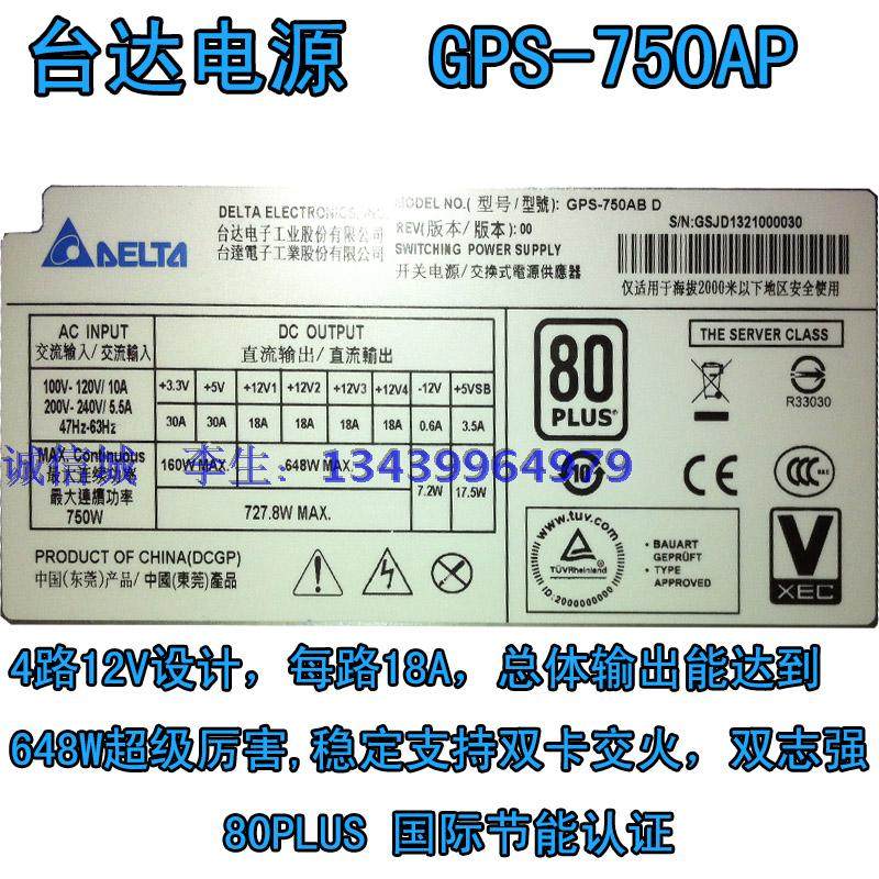 标题: 台达电源/服务器工作站电源/GPS-750AB D/额定750W/另有台达600W