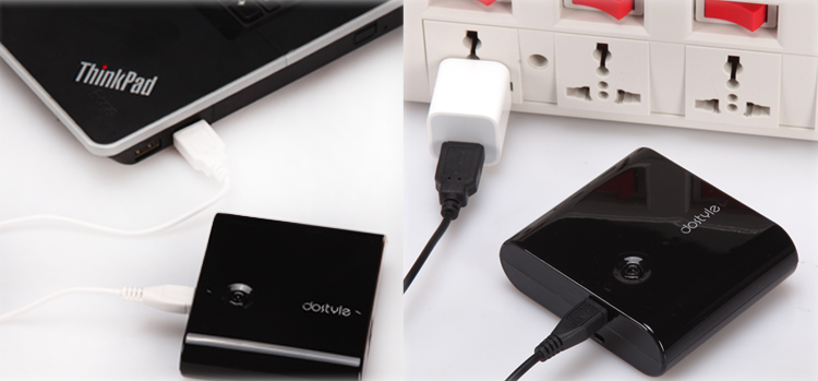 1)把电源线的MICRO USB端口连接到移动电源输入端口。 2) 把USB端连接到电脑或者其它的5V/1AUSB适配器。 3)给移动电源充电过程中,电量指示灯闪烁直至充饱指示灯灭。 4)虽然本移动电源支持边充边放的工作模式,但我们不建议用户这么做,因为有可能因为电压不稳引起超负荷,或内部保护电路板失效而导致设备损坏,甚至有可能造成人身伤害。