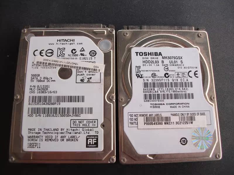 两个硬盘好像都在保,无修,品牌笔记本拆机的,东芝能认盘,日立的敲盘,售出不退不换。