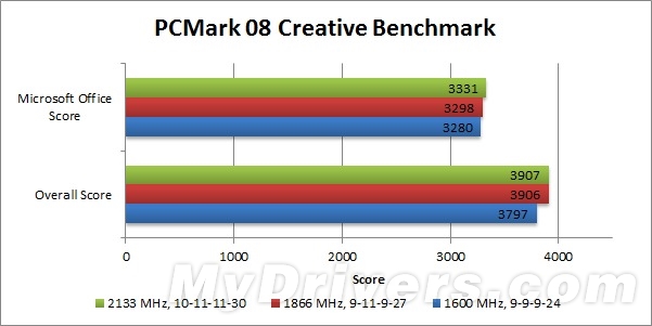 内存频率测试方面DDR3-1866MHz下的表现最好,而DDR3-2133MHz下的表现甚至还不如DDR3-1600MHz下,令人费解。
