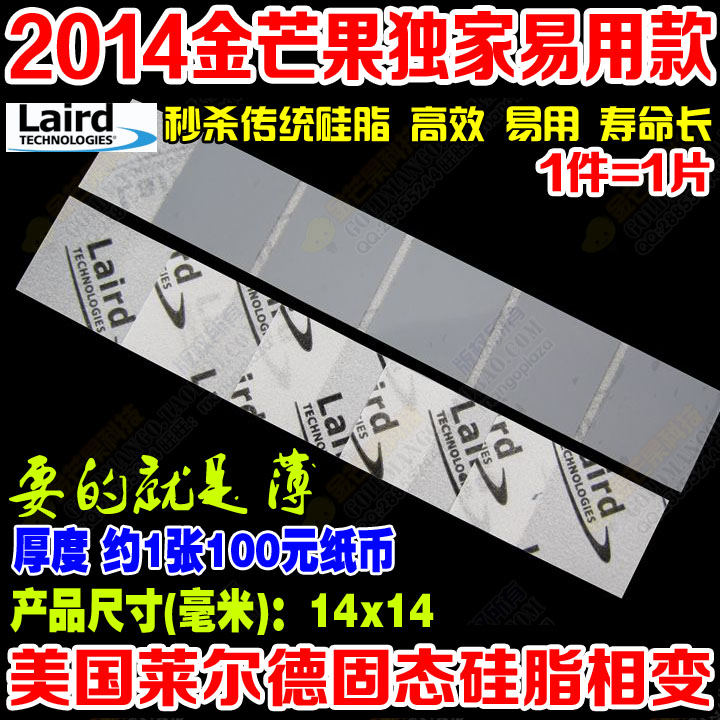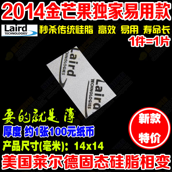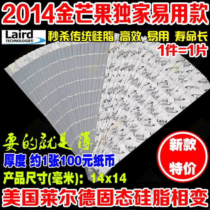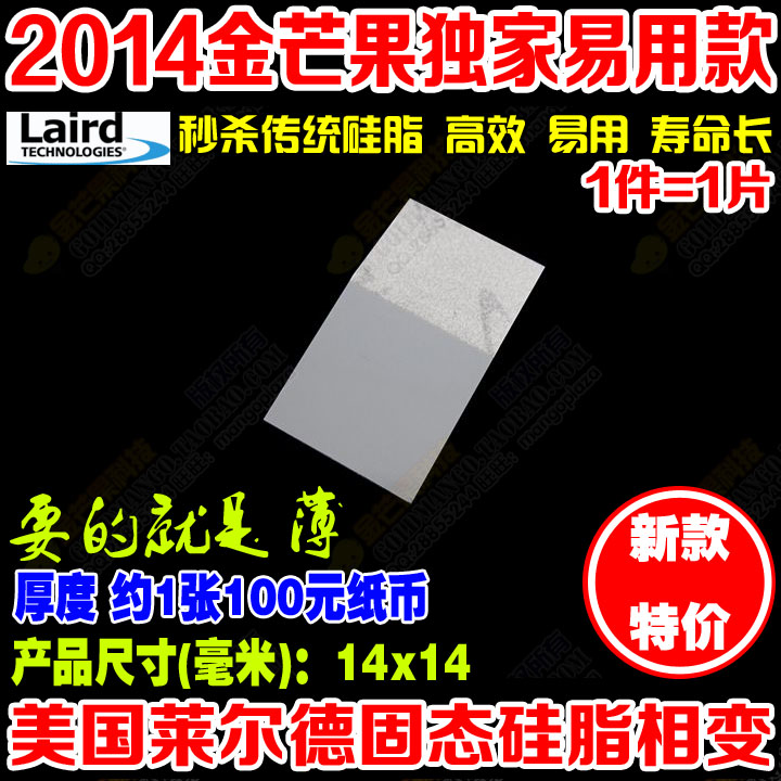 名称:美国 2014年最新改进款 LAIRD超强固态硅脂【相变化】特性:超强导热性能、简单易用、超长耐用时间 秒杀传统导热膏