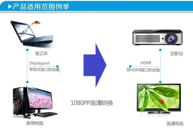 采用高性能转换芯片,支持传输1080P高清分辨率.画质逼真,高清晰细腻,效果超棒.例如ATI5870 DP口用此线直接连接电视高清接口.