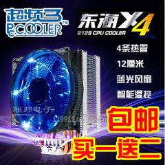 超频三 东海X4 4条热管,12厘米超静音温控蓝光风扇,智能调速,送含银硅脂,送超静音减速线