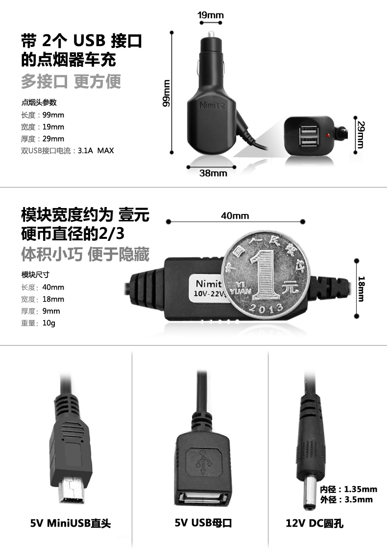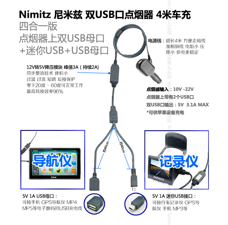 [南京][售]新品免费试用活动nimitz九头蛇4米双USB点烟器车充接行车记录仪导航 电子狗