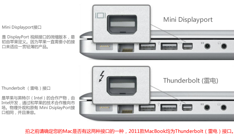 符合MiniDP(Thunderbolt雷电接口)和显示器为DVI接口的就可以转换,不分品牌和设备.