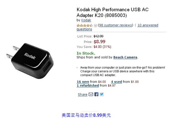 好东西呀,发福利,柯达/kodak 5V 1A 电源,全新带膜,秒价8.8元!!!