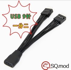 主板USB扩展线 USB 9针一分二 全黑线 10CM Y型 可定制¥20.00