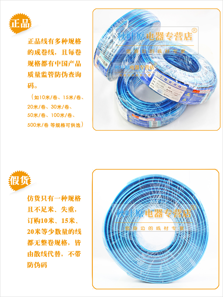 郑重承诺: 绝对正品 假一罚十,护套上都印有秋叶原的标记,每米线标上都有米标。保证的数量的准确性