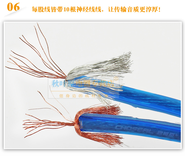 另有322芯的喇叭线特价10元每米,两根均为纯铜镀锡,抗氧化的同时改善集肤效应,本店天猫商城为11元每米。