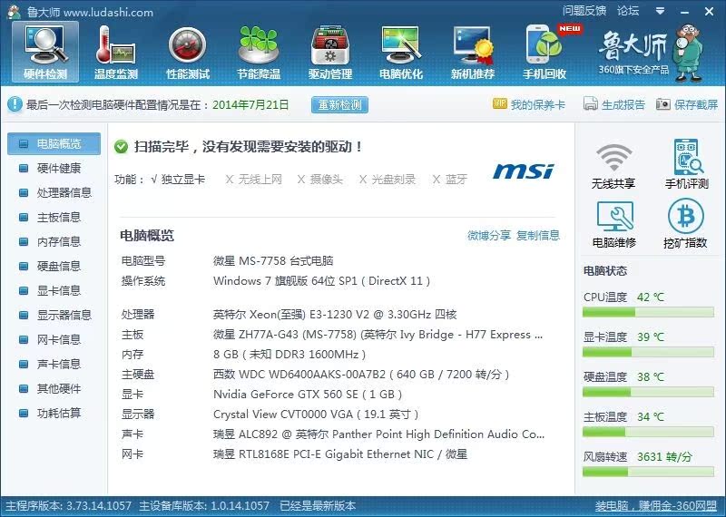 标题: [广东] [售] E3 1230 V2/微星ZH77大板/4G/640G/影驰GTX560/1G黑将版独显主机