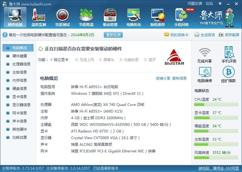 标题: [广东] [售] AMD 速龙740四核/映泰A85全固态/4G/500G/迪兰6750/2G独显主机