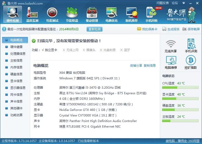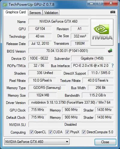 显卡:技嘉GTX460/1GB/DDR5/256BIT游戏显卡(畅玩三D游戏)