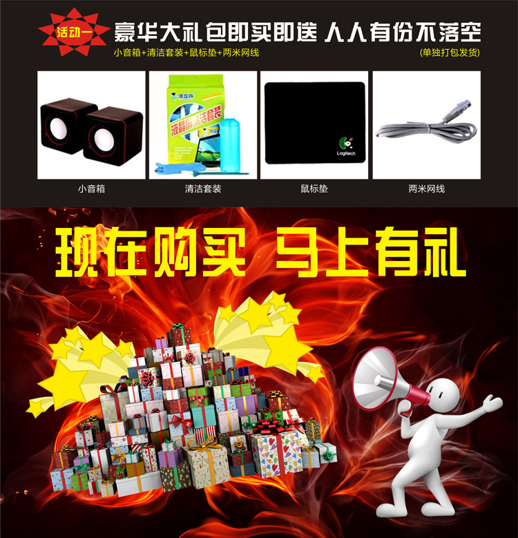 1.买主机送8CM/12CM透明弦彩风扇各1个,LED灯红色/蓝色各1条。扎线带一包,先到先得,送完即止。(如需换其它色彩联系在线客服)