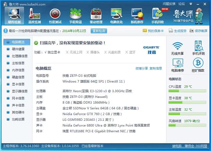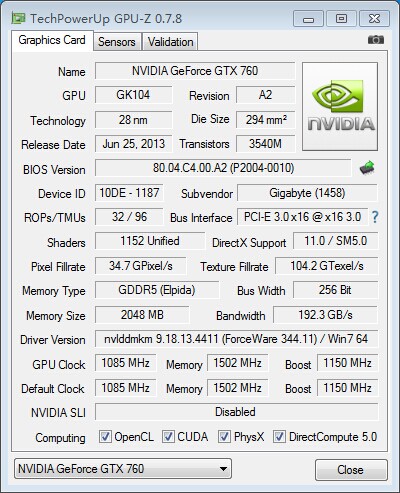 显卡:技嘉GTX760/2GB/DDR5/256BIT原装显卡(三风扇豪华卡,畅玩超大型三D游戏)