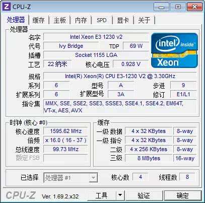 CPU: E3 1230 V2(原装八线程,速度快)