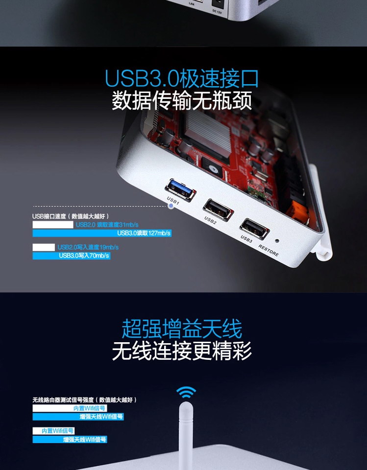 12、内置高增益无线WIFI,无须再配置外置无线网卡