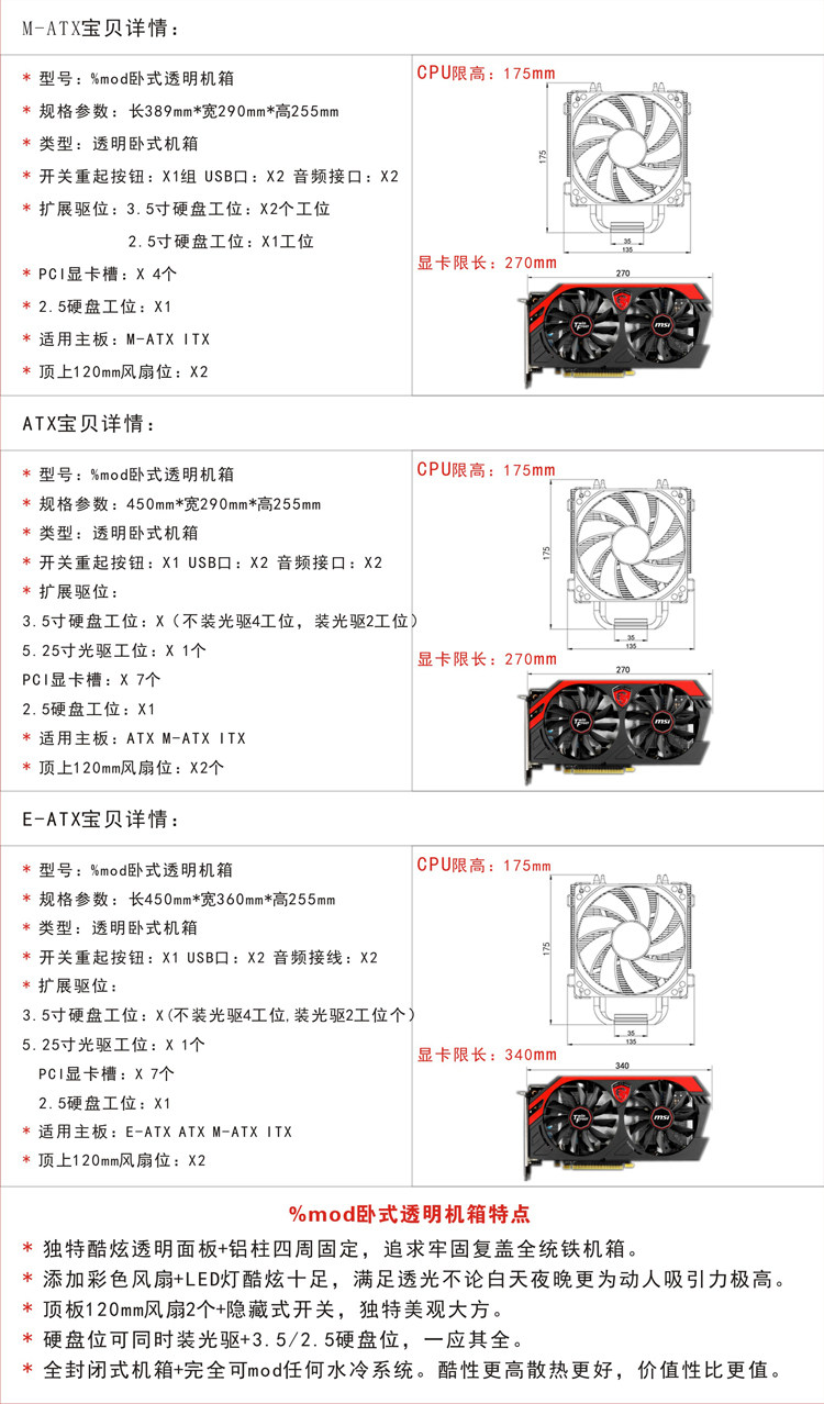 电脑机箱 卧式ATX透明主机空箱 台式电脑机箱 弦酷游戏水冷机箱