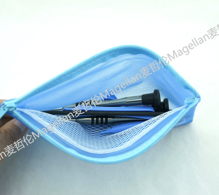 清单:金属五星、金属十字、迷你黑色一字螺丝刀、带拉手吸盘、黑色长撬棒、蓝色3种造型撬棒、送工具袋。套装中共有3种型号螺丝刀,五星是拆手机后盖的,十字及一字是拆手机内部螺丝的。苹果5系要用到吸盘,把屏幕吸起来。4款撬棒是用来挑内部排线的。小店赠送一个工具袋,方便收纳保管。