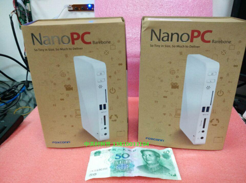 本款为富士康原装型号为nt-iBT19,CPU为赛扬四核2.0G,支持高清1080P蓝光等,支持msata以及2.5寸硬盘,带wifi无线,带挂架,底座等,原装标配,不带内存和硬盘,整机功耗15W左右;支持NAS群晖等。
