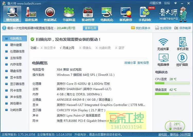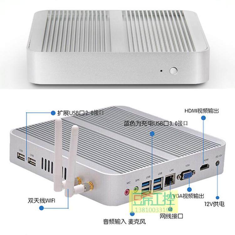 全新全铝无风扇i5-4200U迷你工控机,独特的散热设计,进口含银导热膏,紫铜片,全新冰刺散热全铝机箱; 鲁大师性能评分10万多分;经典无风扇静音设计;整机加内存硬盘最大功耗27W左右;CPU由原来的i5-3317U升级为酷睿i5-4200U,核芯显卡升级为HD4400,支持4K高清输出,支持双通道内存,功耗及发热更低,外观及接口不变,性能更强大!
