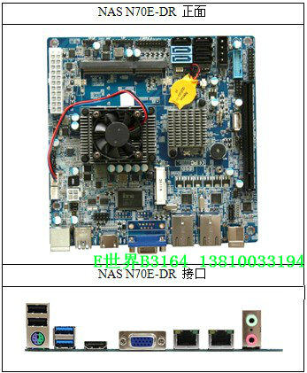 新款NAS N70E-DR(V3版本)/ITX主板 /6个sata /云存储 /Intel 82574双千兆网卡 /C1037U赛扬双核1.8G/HM77 /USB3.0+USB3.0插针/支持msata固态硬盘,支持阵列Raid0,1,5等