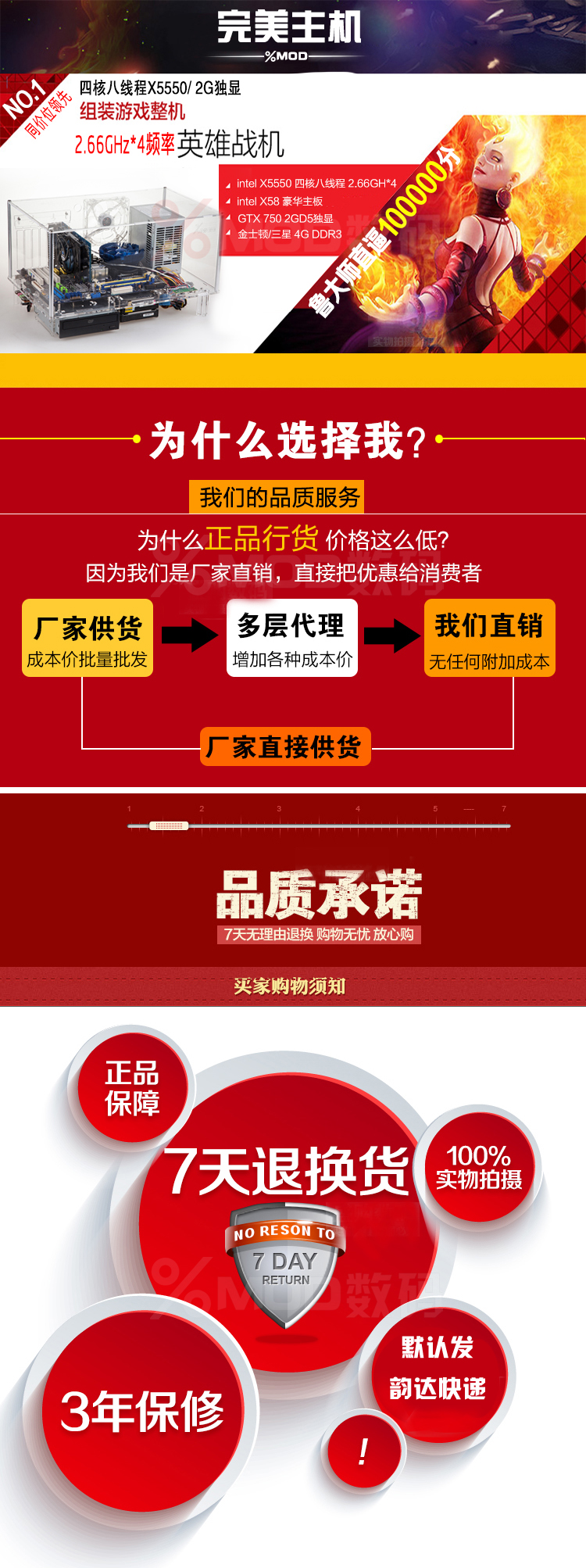 秒杀i5i7四核独显透明水冷台式酒网吧八核电脑机兼容组装整主机