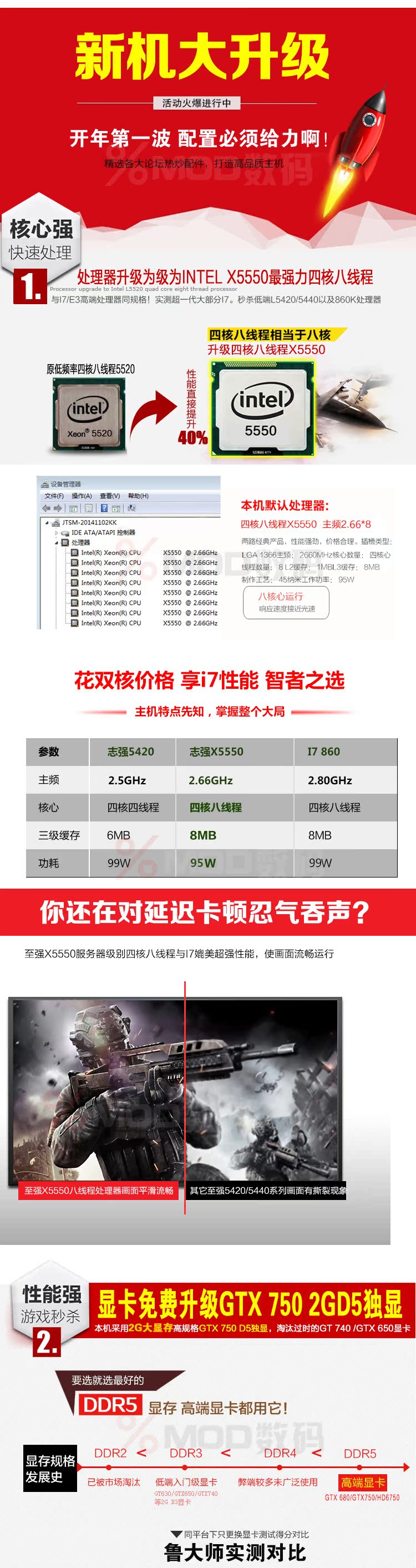 真正四核八线程电脑透明主机 鲁大师测试直B 100000分!