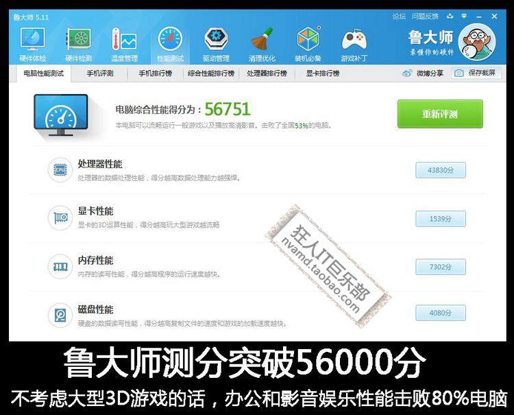 24秒启动Win7系统,打败98%的电脑,鲁大师跑分56000分以上。
