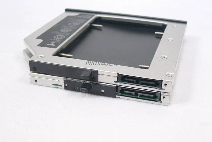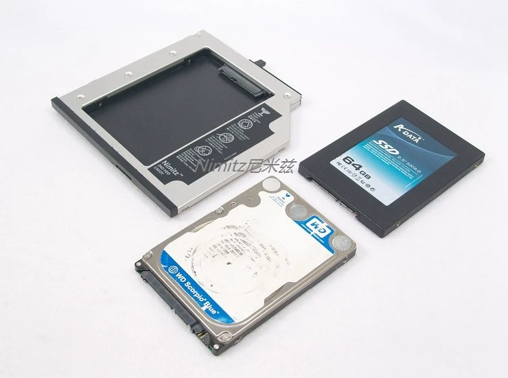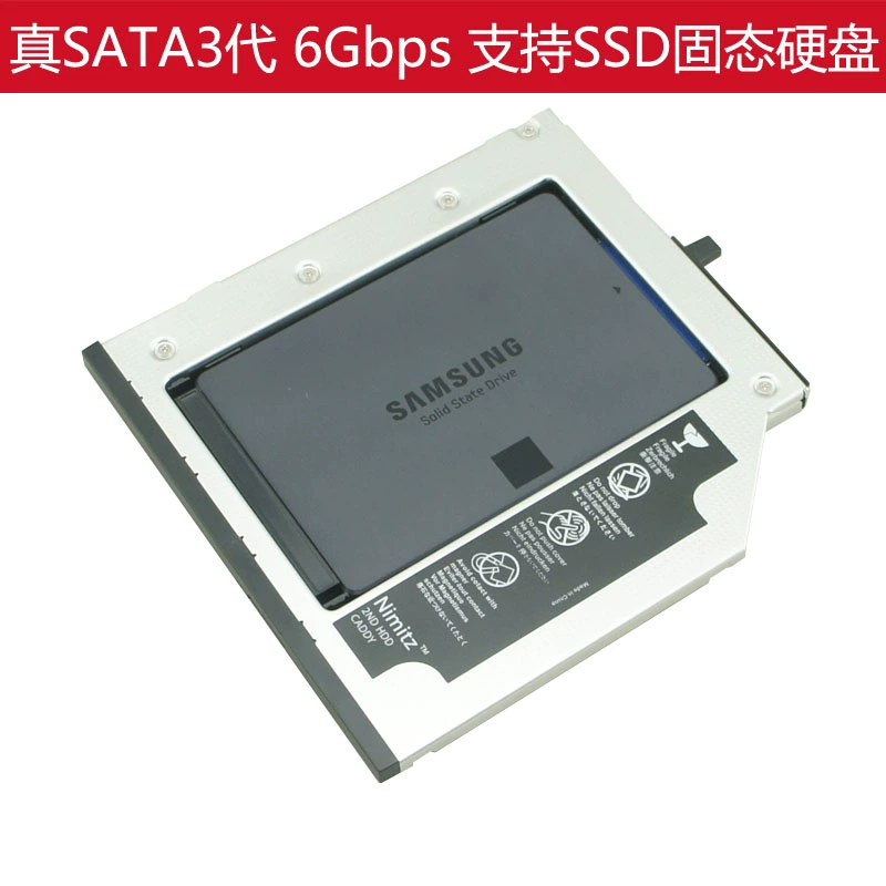 第一解决方案:直接将SSD装入光驱位硬盘托架中 支持SATA3 与原硬盘位速度一样