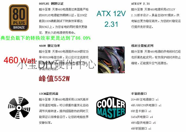 ![]() CoolerMaster 酷冷至尊 天尊460 主动式PFC 电源 特价168元(顶贴包邮) |