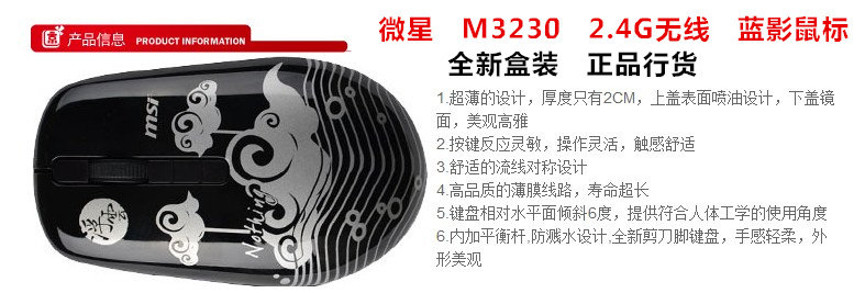 微星M3230 蓝影激光2.4G无线鼠标,超长距离,定位精准,按键舒适!