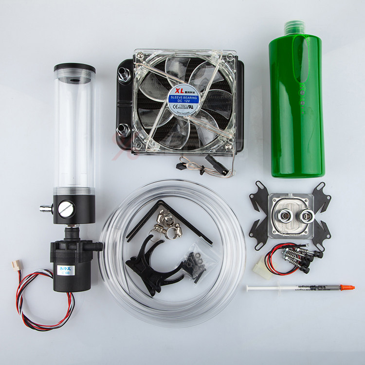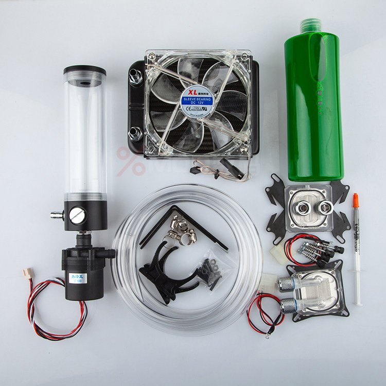 下图套 餐 1:一. 120mm冷排 1套二. 通用CPU冷头 1套三. 水箱长度(145mm/190mm ) 1套没有要求随机发货四. 2分透明软管2 米五. SC600水泵 1 个六. 冷液500毫升 1支(红、蓝、绿、)3色选择【拍下请留言要什么颜色,否则随机发货】七. 送CPU水冷头LED灯 1条 亲没有要求随机发货八. 送CPU硅胶针 1支