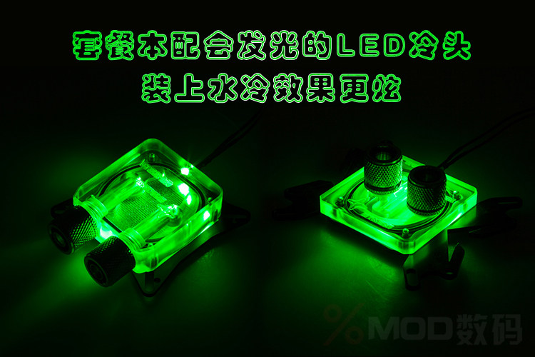 下图为LED灯发光水冷头实拍效果,装上水冷效果更弦。蓝色/白色/绿色,随机发货。