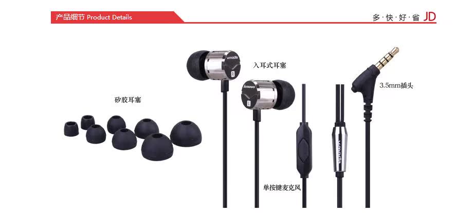 25元【原装】联想 V-moda LH608有线耳机 黑色 延续音乐神话顶级HIFI