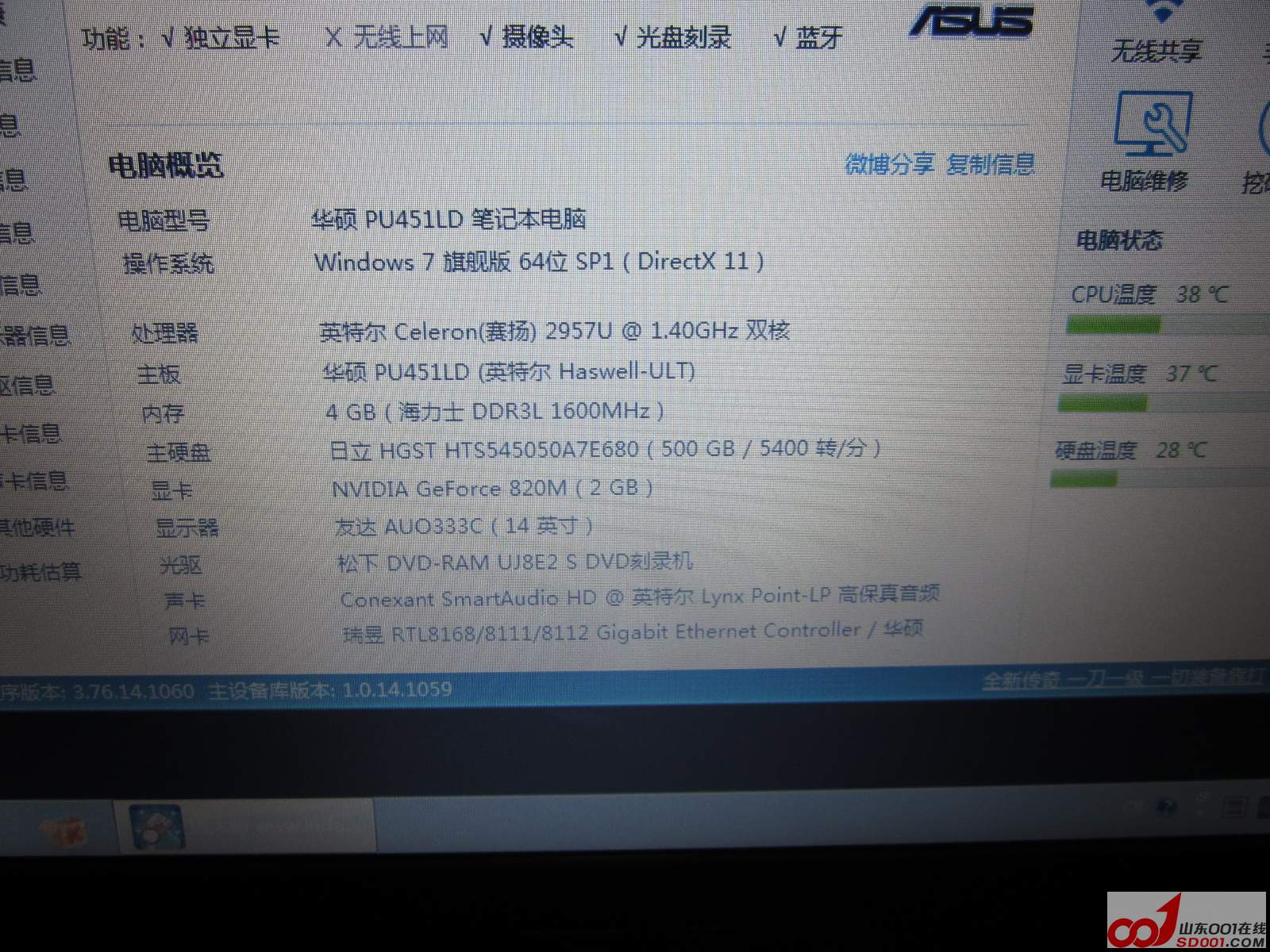 2957U 4G 500G GT820/2G独 14寸 15年1月出通电几小时冲新联保