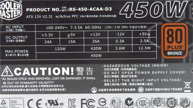 大风车超静音 电源500W 额定450W 酷冷至尊 铜牌 单路12V APFC